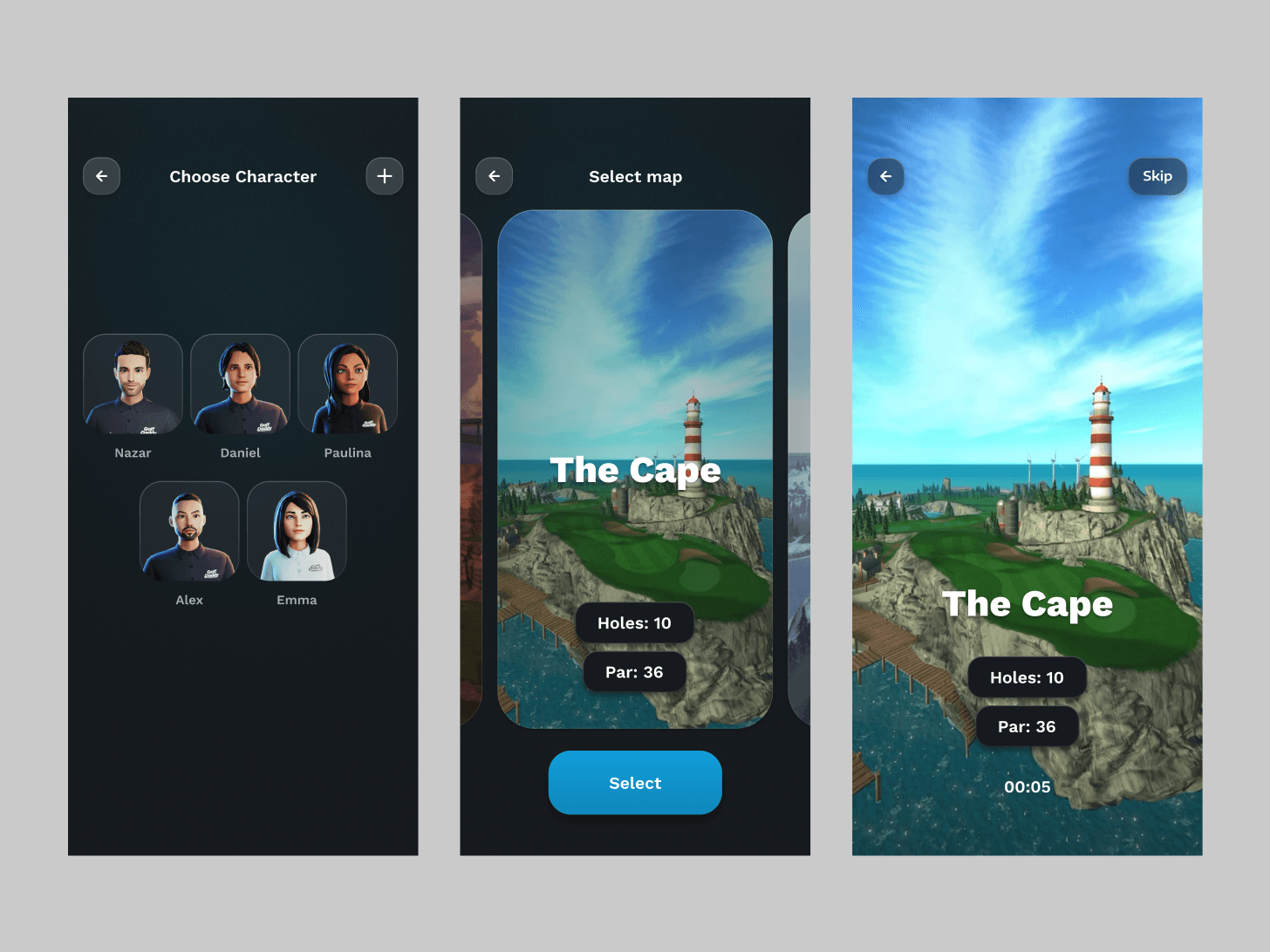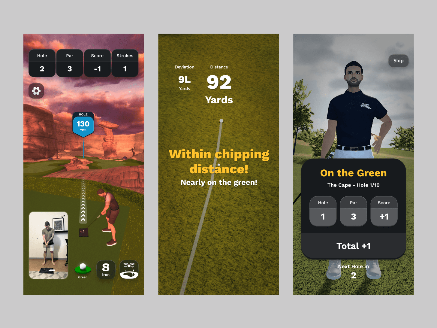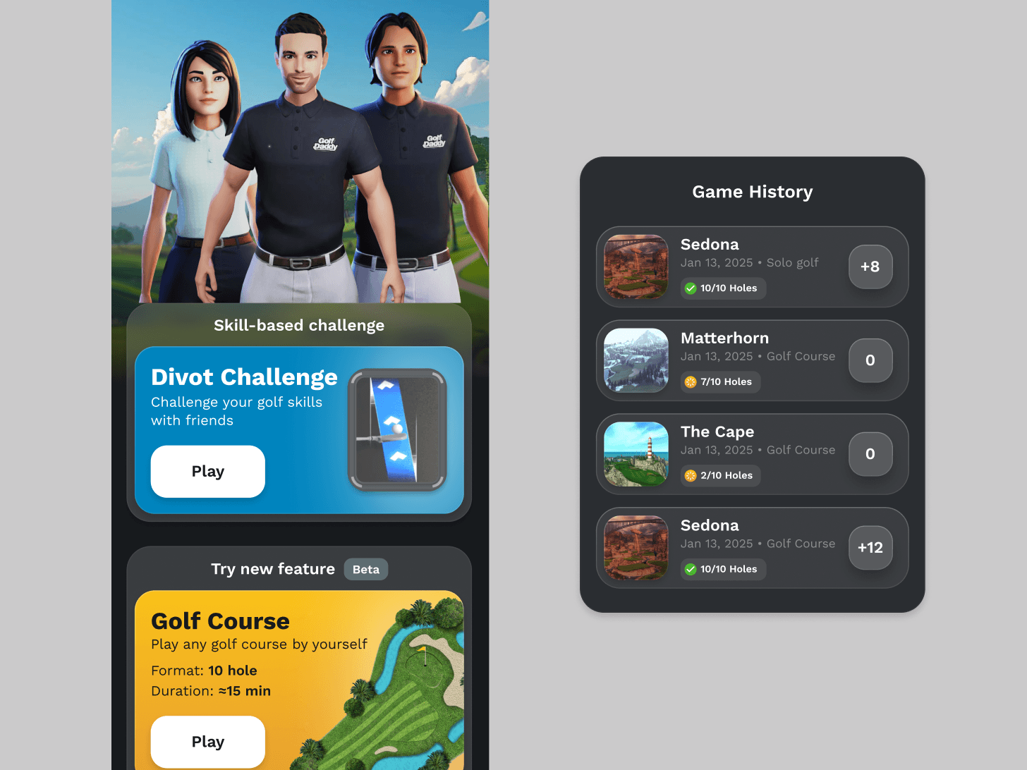 To balance serious training with fun, I integrated a dedicated game mode. This feature enables users to apply their skills on various virtual golf courses, offering both solo practice sessions and competitive social play with friends to boost long-term user retention.
