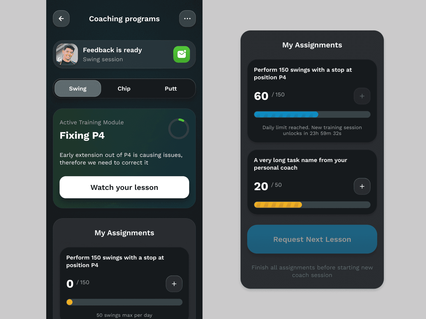 Beyond AI feedback, I designed the architecture for a premium subscription tier. This feature connects users directly with real professional coaches for in-depth human analysis. The system then generates personalized training programs based on a hybrid of AI data and expert review, creating a hyper-customized improvement journey.