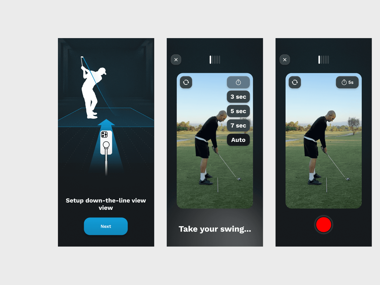 Golf Daddy is an innovative mobile simulator designed to democratize professional-grade golf training. The core challenge was developing a seamless UX for an advanced AI system that leverages the user's smartphone camera (mounted on a tripod) to record, track, and analyze swing mechanics in real-time.